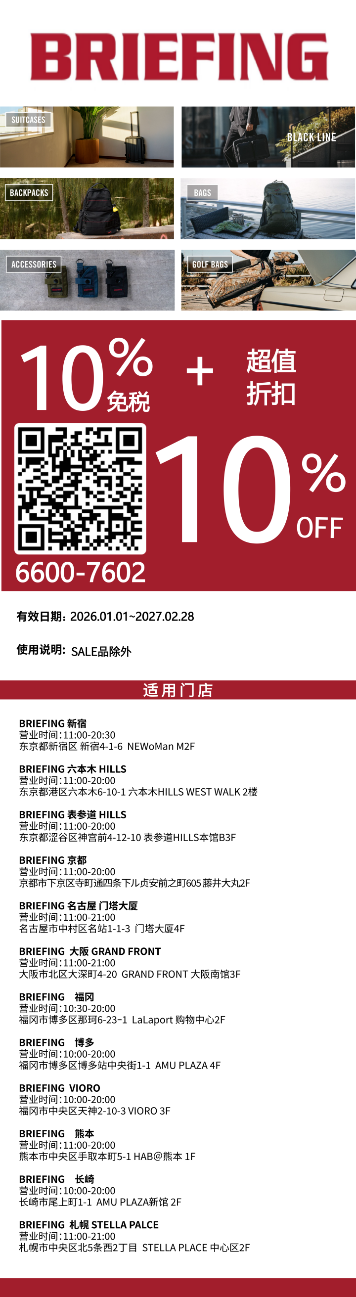 BRIEFING 10%免税 + 10%折扣券