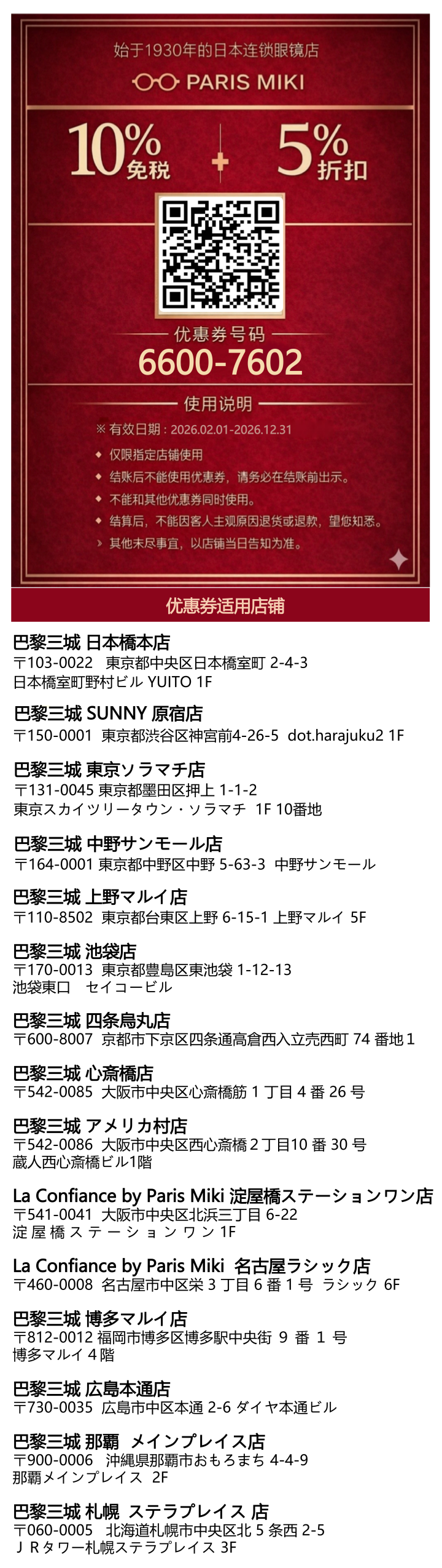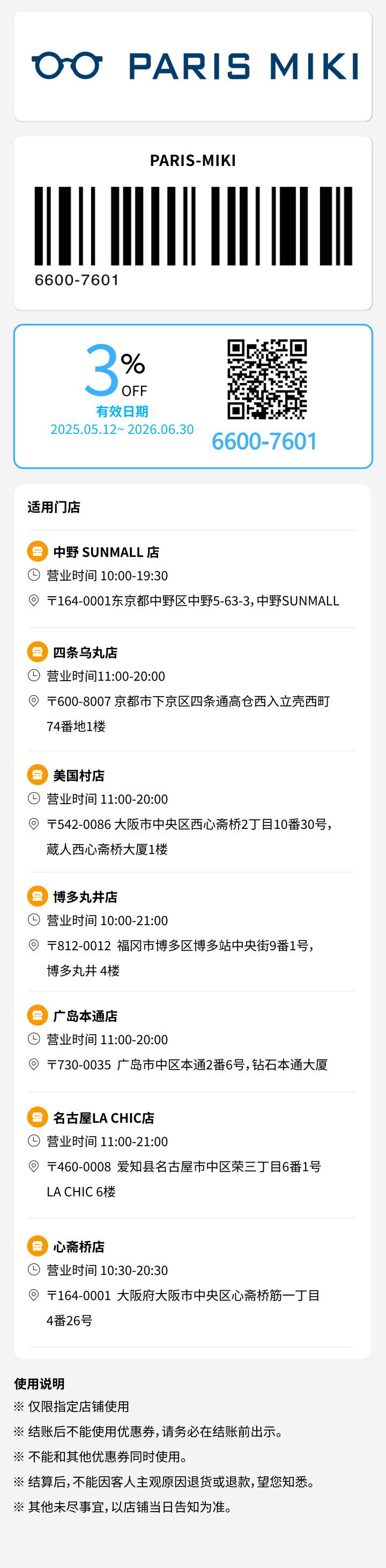 ※ 结账后不能使用优惠券,请务必在结账前出示。