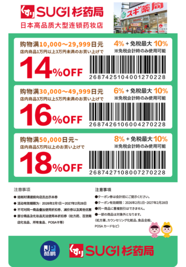 SUGI 杉药局(スギドラッグ)免税折扣优惠券|最高可享免税10%+8%折价优惠! |