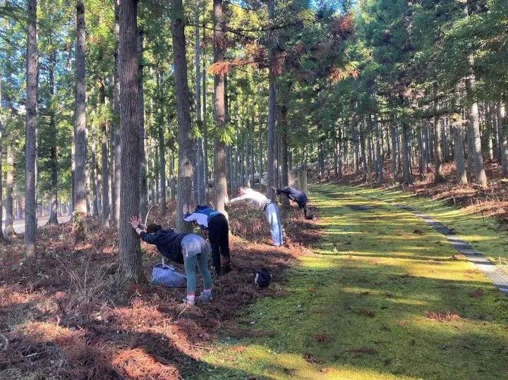 After a relaxing stay at a local hot spring ryokan, participants will take part in a forest therapy session in Okukuji Forest. The session consists of simple stretching exercises. Inhaling fresh forest air while exploring this secular forest will make you feel refreshed and full of energy.