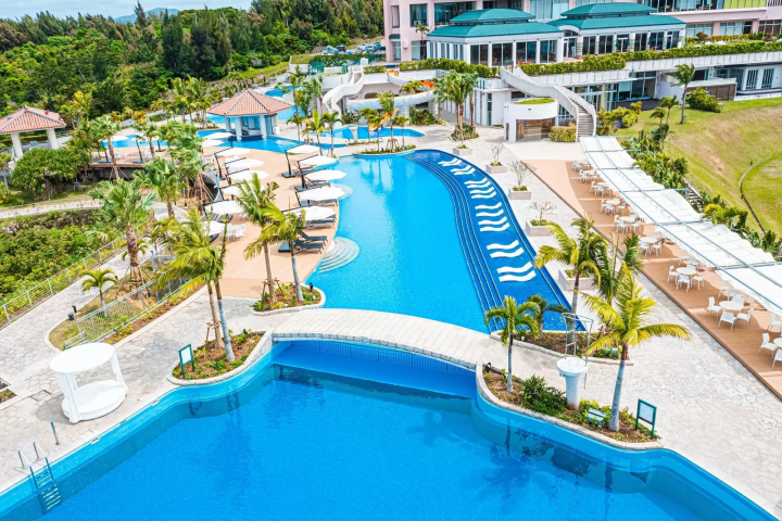There are endless ways to have fun at the pool, such as riding the 47.5m long water slide, sunbathing while sipping a drink, or watching the sunset over the East China Sea.