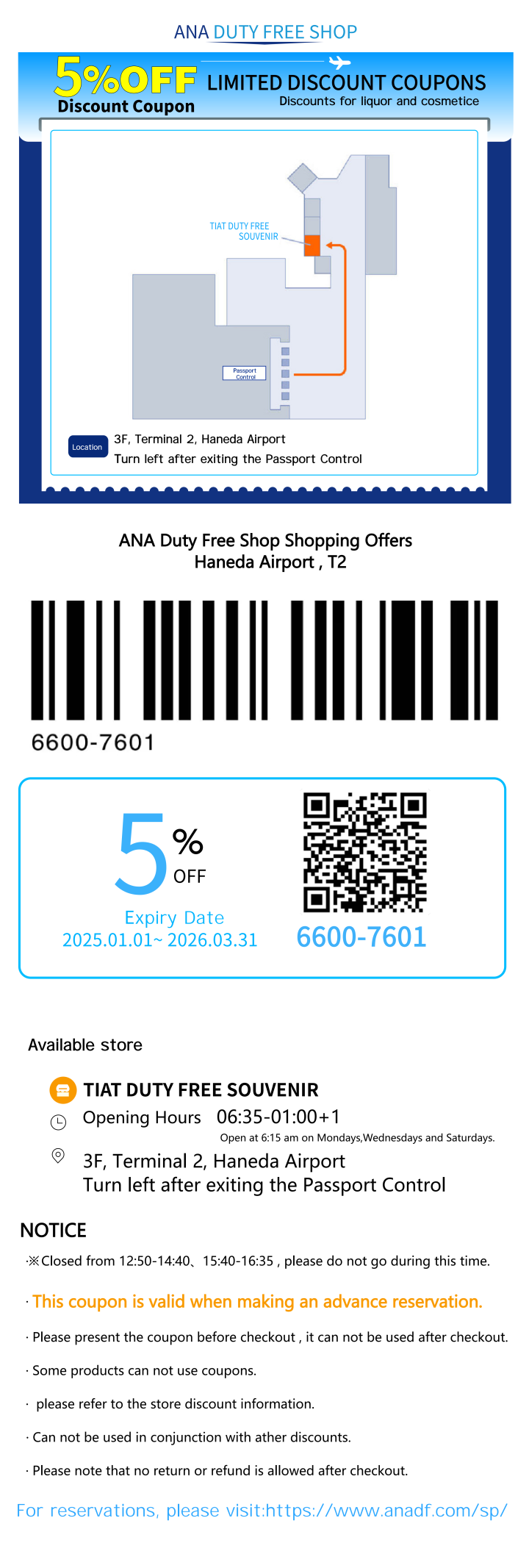 ANA DUTY FREE SHOP Haneda Airport T2 - 5% OFF Discount Coupon for Advance Reservation
