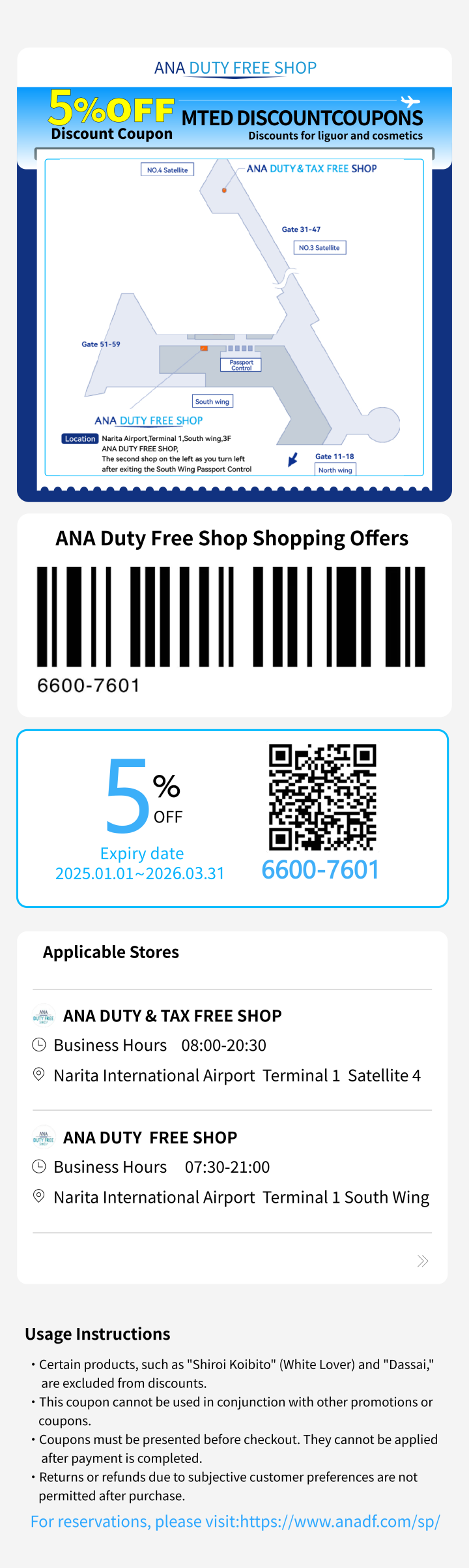 ANA DUTY FREE SHOP Narita Airport T1 - 5% OFF Discount Coupon for Advance Reservation