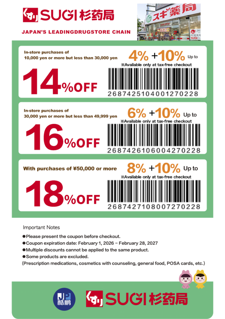 ※ Valid at all SUGI Pharmacy stores that offer tax-free services