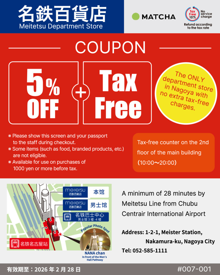 ■ Please present the coupon screen to the sales staff at the time of payment. We will provide a 5% discount from the pre-tax amount.