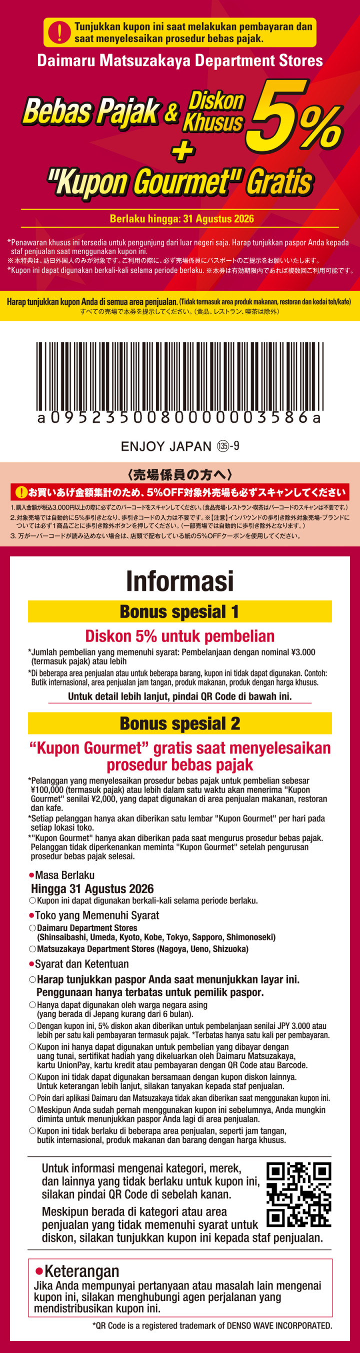 ・Ada kemungkinan Anda akan diminta menunjukkan paspor lagi di toko setelah penggunaan kupon pertama.