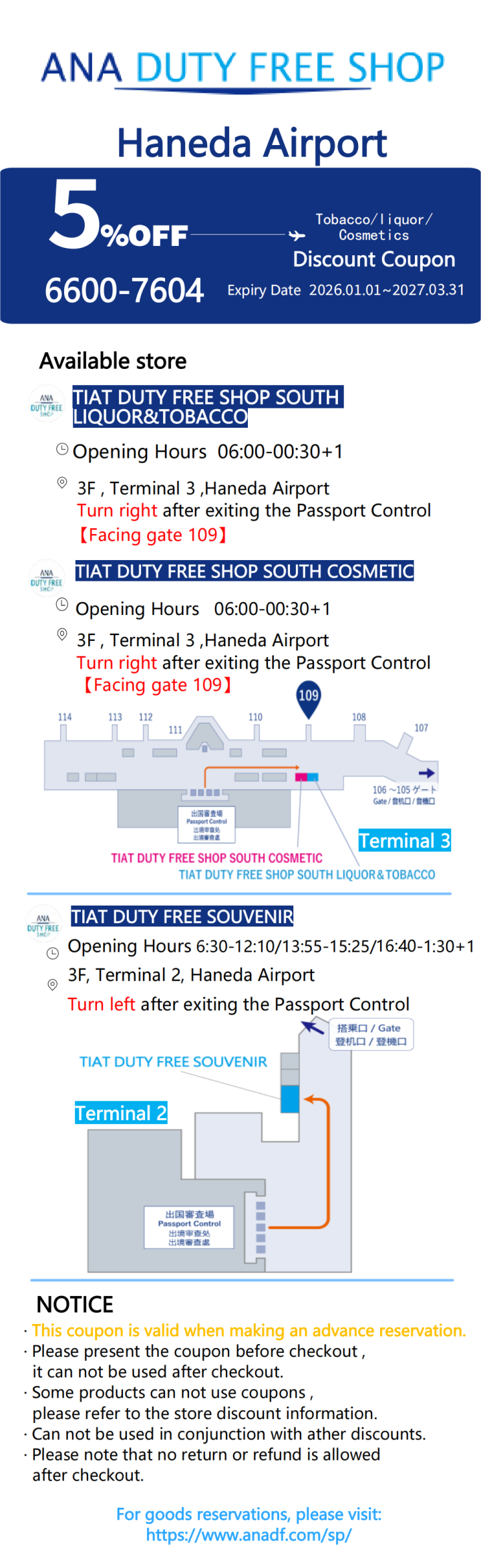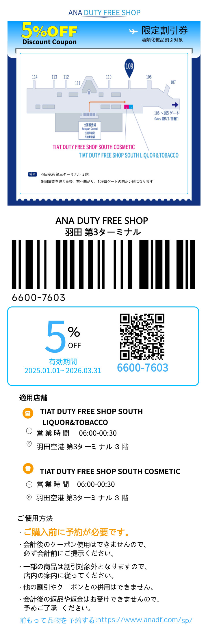 ANA DUTY FREE SHOP 羽田空港ターミナル3- 免税商品事前予約5% OFFクーポン