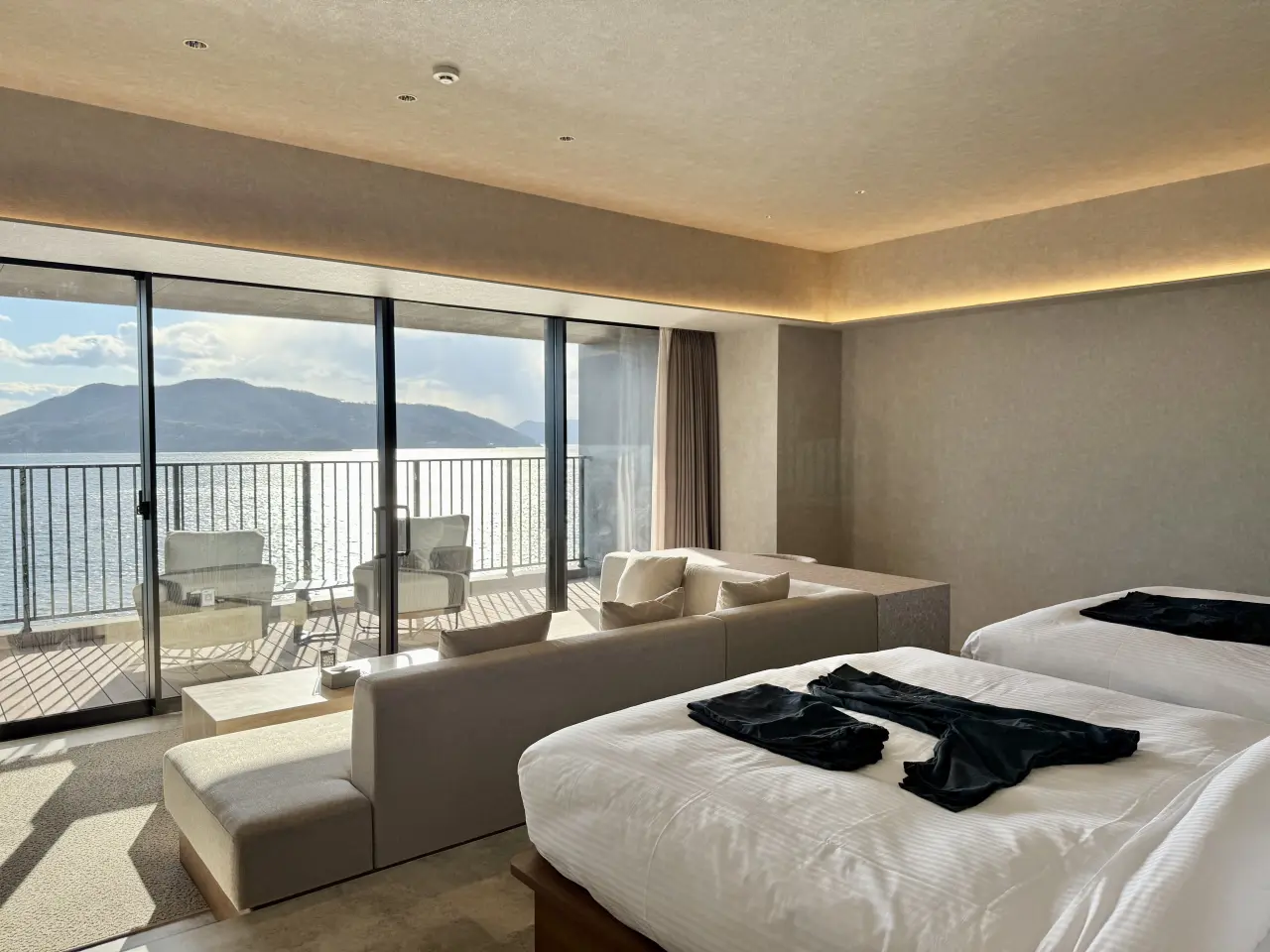 高松港からフェリーに揺られること一時間。瀬戸内海で二番目に大きな島、小豆島。碧い海と深い緑に抱かれたこの楽園に、「edit x seven 瀬戸内小豆島」が幕を開けます。 全45室の客室は、120平米を超えるスイートルームを筆頭に、洗練を極めた設えと静寂が溶け合う至福のプライベート空間。さらに、島内初となるオーシャンビューのサーマルスパ「edén SETOUCHI」では、海と溶け合うような浮遊感を。そして瀬戸内の旬をモダンに昇華させたダイニングが、日常を忘れさせる贅沢な時間をご提供します。