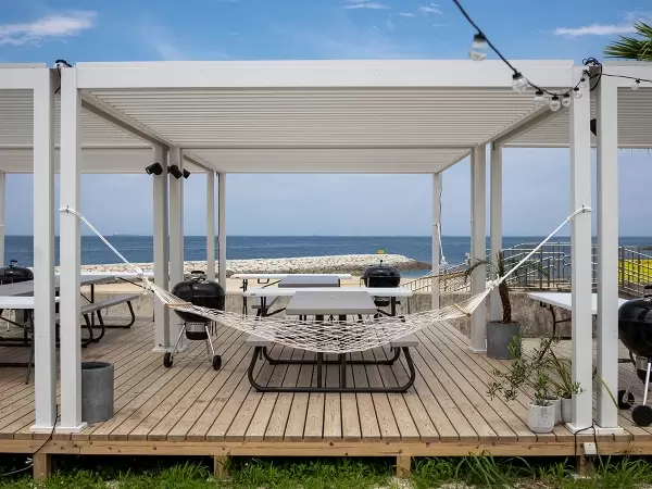 린쿠 비치 내에 작년 4월에 오픈한지 얼마 안되는 「Link del mar(링크 델 마)」그란핑 테이스트의 BBQ 시설입니다.