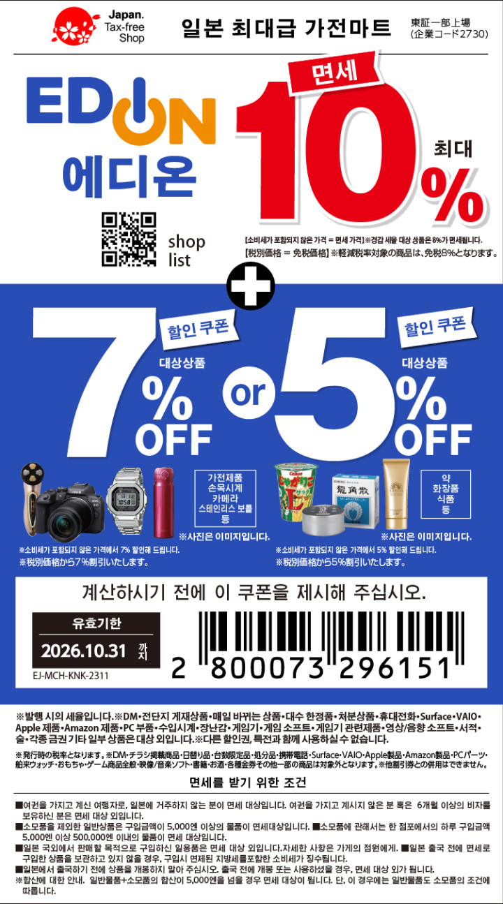 여권을 가지고 계시지 않은 분 혹은 6개월 이상의 비자를 보유하신 분은 면세 대상 외입니다.