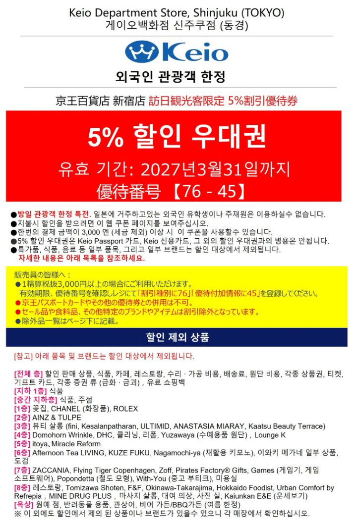 또한, 일부 브랜드는 이 할인 쿠폰을 사용할 수 없습니다. 자세한 내용은 매장에 문의해 주세요.