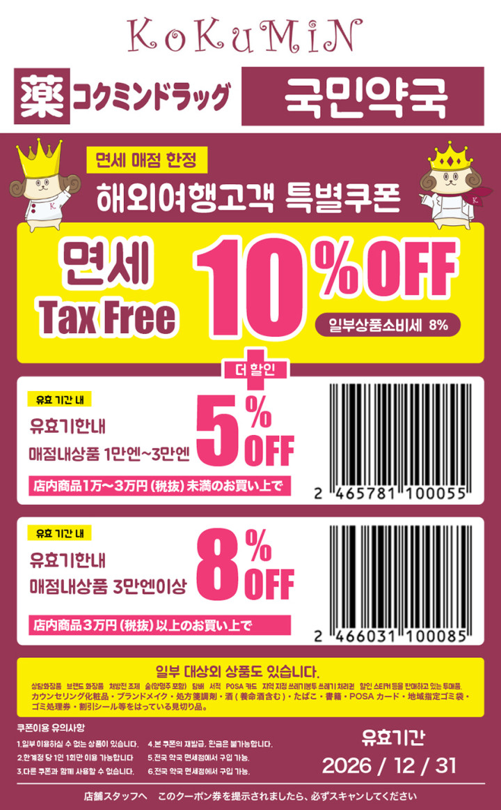 국민약국 면세 매장 한정 해외여행고객 특별쿠폰