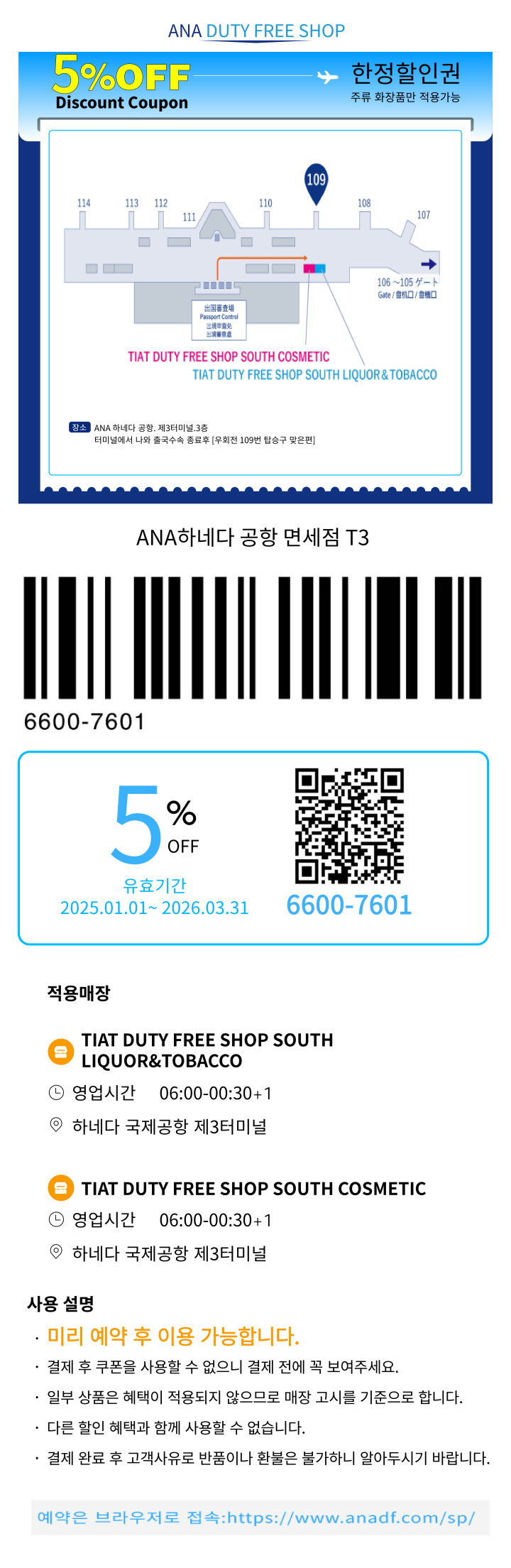 ANA DUTY FREE SHOP 하네다 국제공항 제3터미널 - 사전 예약 5% 할인 쿠폰