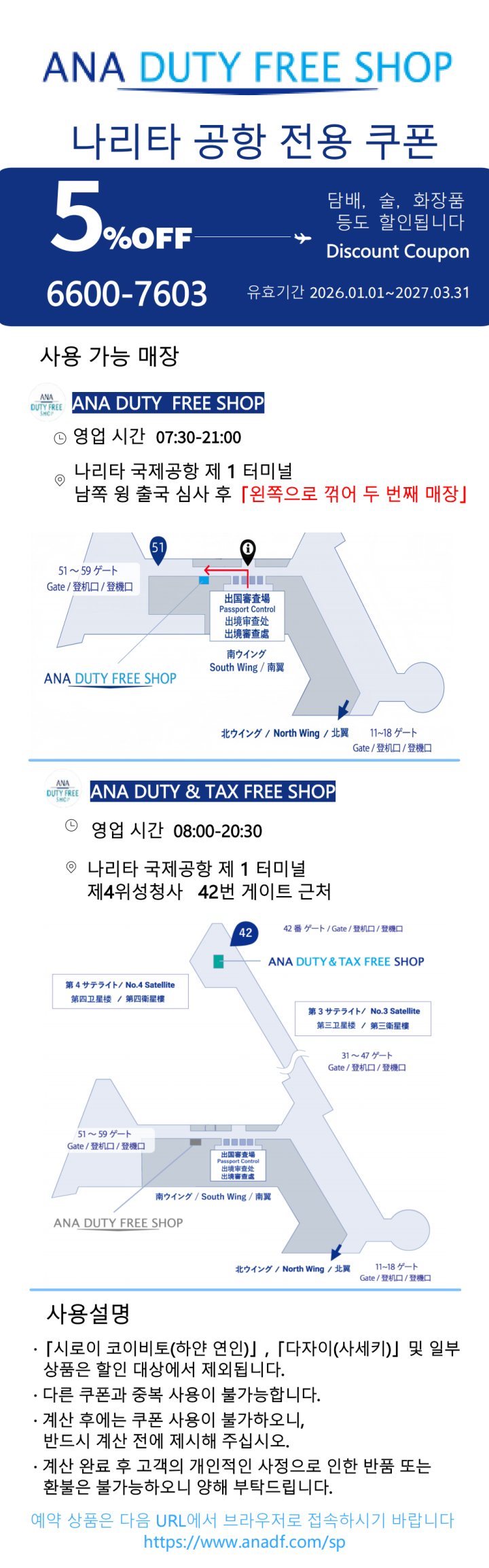ANA DUTY FREE SHOP 나리타 국제공항 제1터미널 - 5% 할인 쿠폰