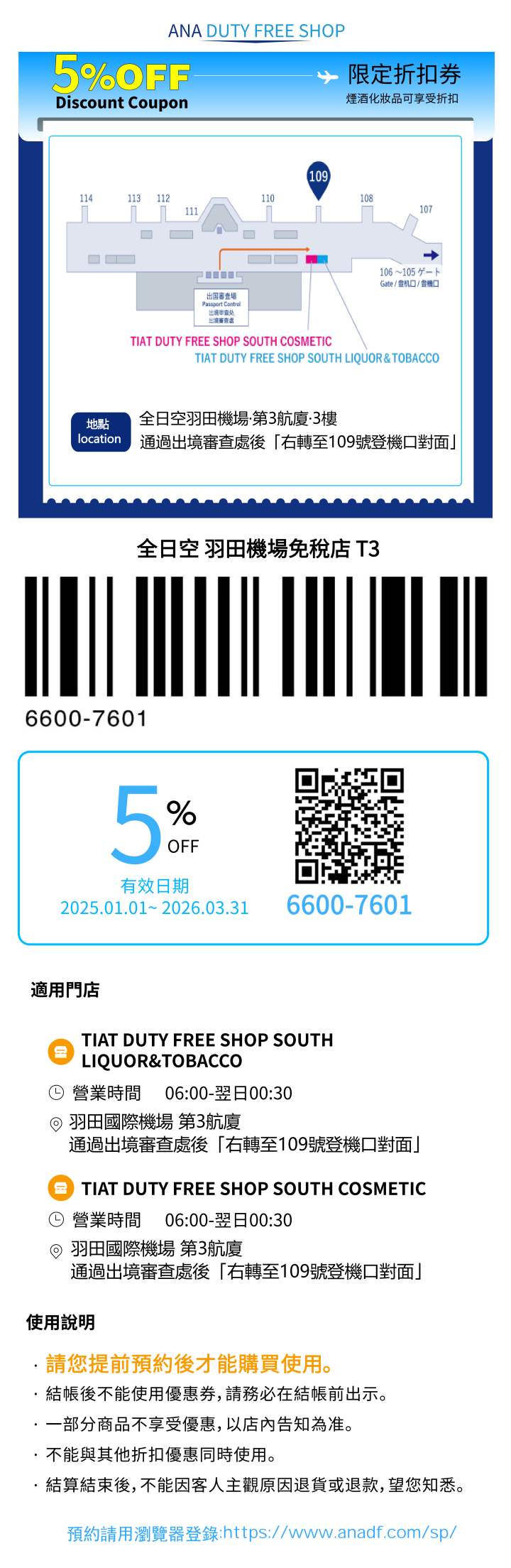 全日空 羽田機場T3免稅店 提前預約5%折扣券