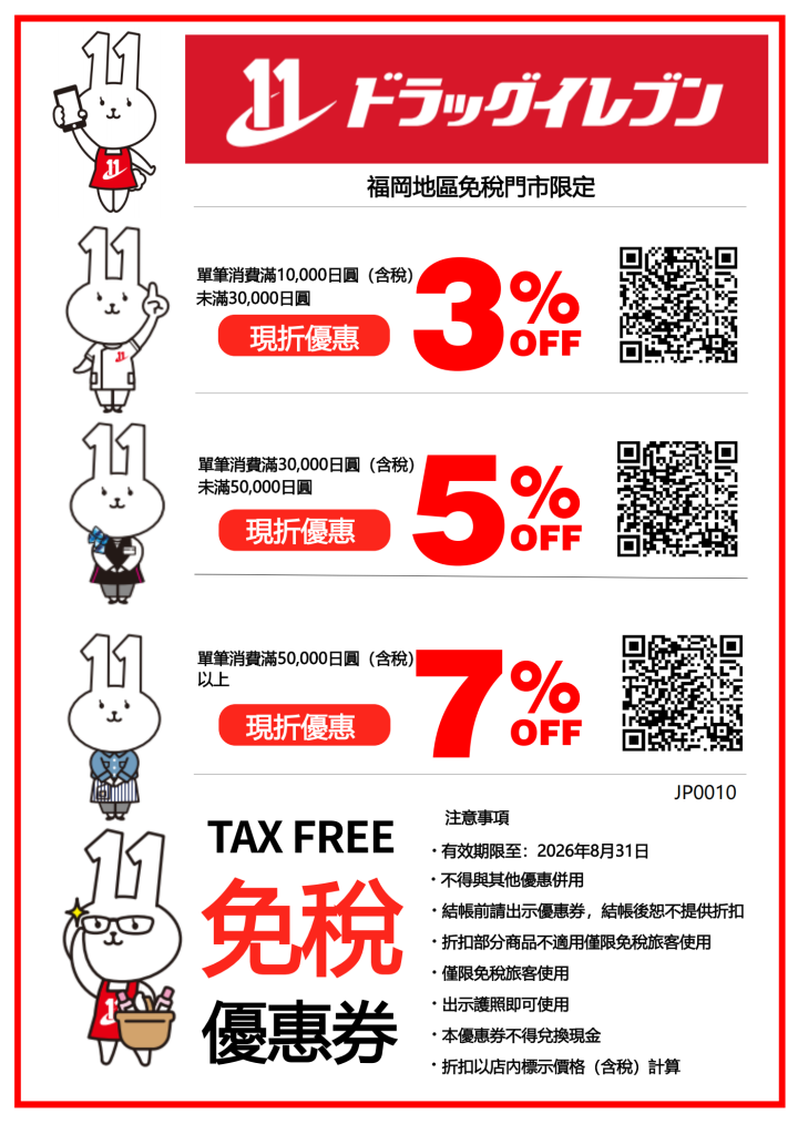 免稅折扣優惠券(福岡地區店舖限定)